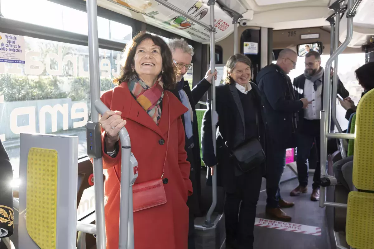 La visite s’est poursuivie au sein des locaux de DK’Bus, le service de transport à la demande de l’agglomération de Dunkerque. La ministre a assisté à la présentation du dispositif « arrêt à la demande » permettant une meilleure accessibilité des transports pour les personnes en situation de handicap. D’importants travaux d’aménagement ont permis de mettre 85 % des arrêts conformes aux exigences d’accessibilité, ainsi que le renouvellement de la flotte qui permet d’accueillir deux personnes à mobilité réduite.